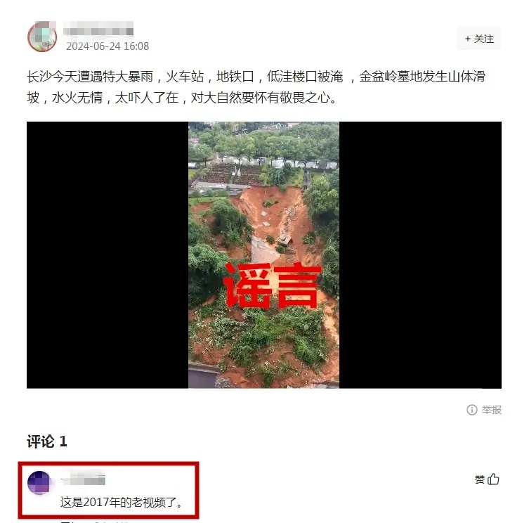 6月25日,据互联网联合辟谣平台消息,近日,湖南长沙迎来暴雨天气,长沙人的朋友圈里出现了一些博人眼球的信息。