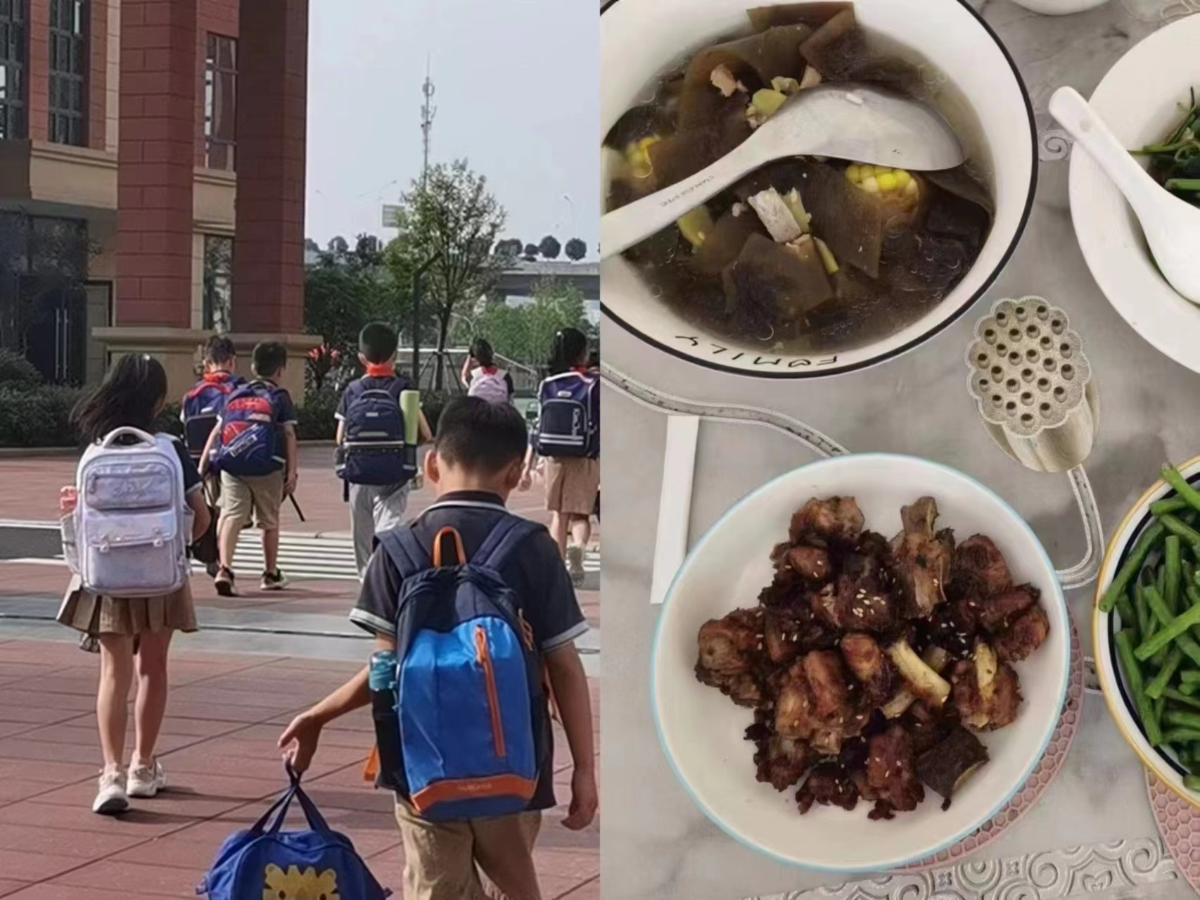 张清接送小孩上下学和为小孩做的晚餐。图/受访者提供