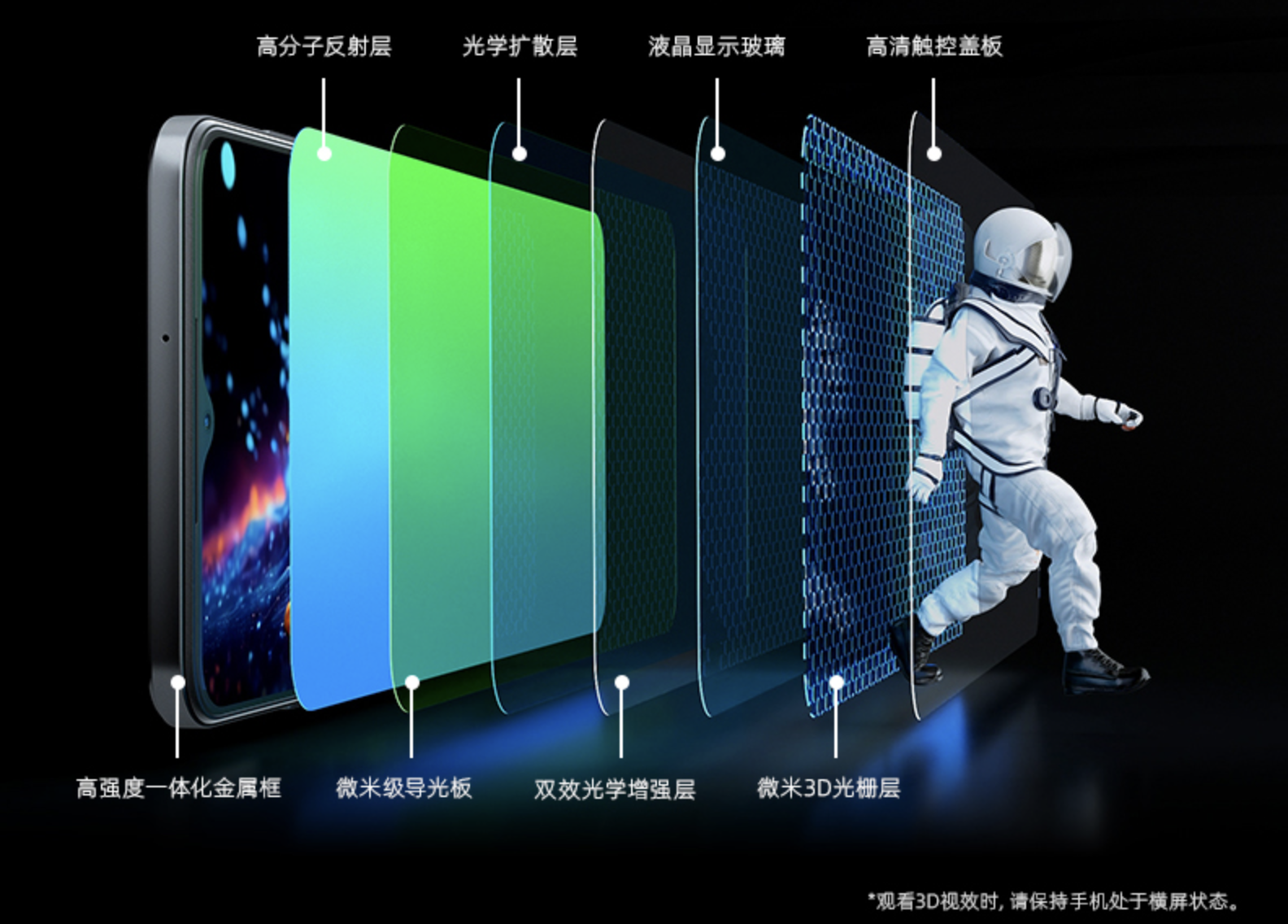 中兴远航 3D 采用微米级裸眼 3D 系统,在这块 LCD 屏幕上搭载微米级 3D 光栅技术,并且通过 AI 重塑 3D 效果,带来更沉浸的裸眼 3D 创新体验。