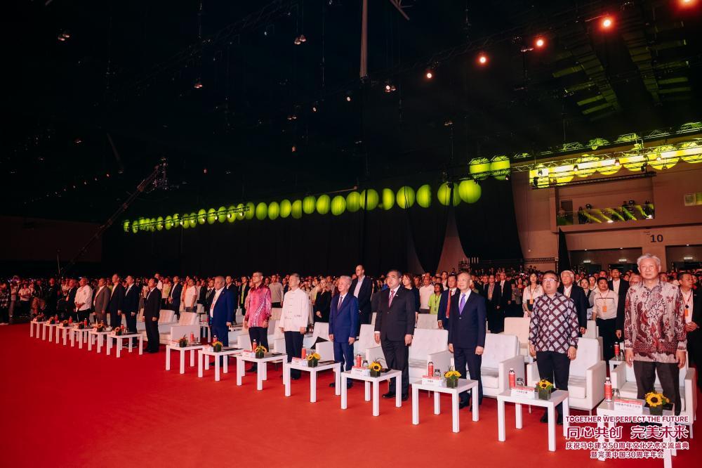 古润金在盛典上发表了热情洋溢的致辞。古润金表示,作为马来西亚第三代华裔,很荣幸能够共同见证中马建交的辉煌50载,50不仅仅是一个数字,更代表着半个世纪的深厚情谊,见证了两国人民的携手前行。30年前,凭借着两国之间悠久且坚定的友好背景,我们创立了完美公司,并在此后持续稳健地发展壮大。我们相信,完美公司的下一个30年,一定坚持写在两国友好的下一个50年里面。