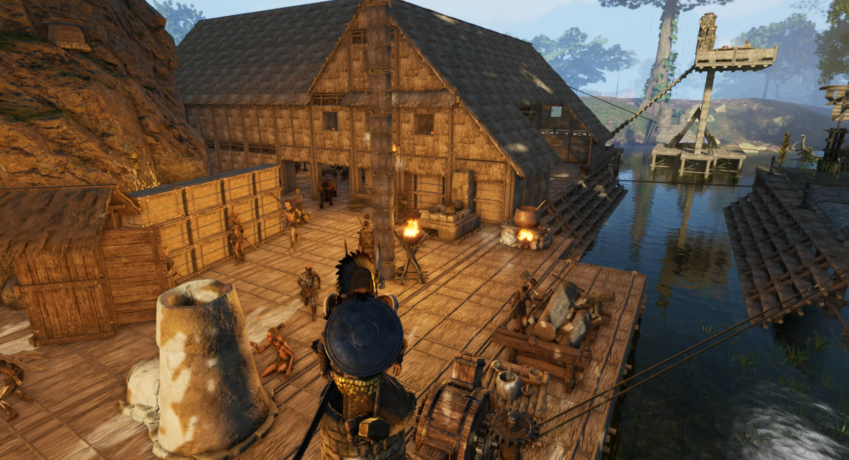《灵魂面甲》设定在原始氏族,玩家能够通过一种特殊的面甲将敌人收编,也就是成为自己的帕鲁来进行工作,从而扩大部族的发展,让自己可以更好地进行探索。抓来的蛮子们可以干一些看护、整理、巡逻、维修的活儿,不过据说因为这些NPC都使用了AI,相较于其他游戏相对不可预测了一些,但也因此造成了服务器的卡顿。