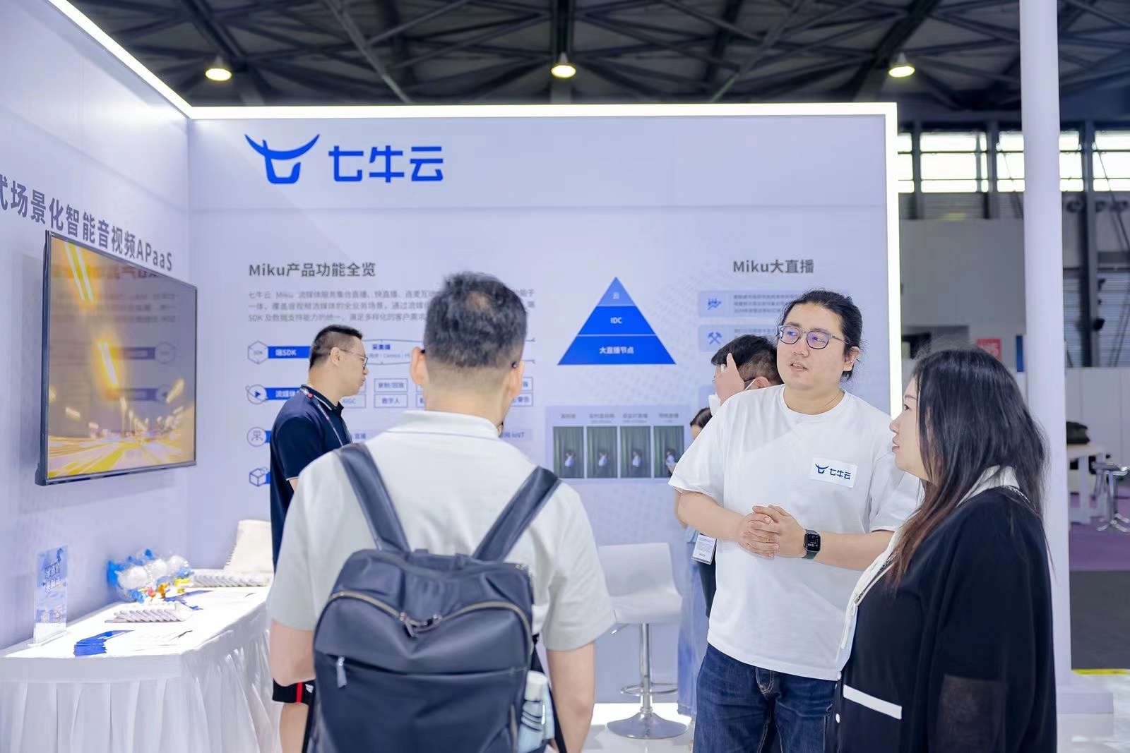 新秀们不断崛起,另一边,成立于2011年的七牛云则仍以强劲势能,持续打磨智能音视频场景,从云存储到数据智能,用实力诠释着张江技术力量自我焕新的充沛活力。当天下午,七牛云还在现场举行了发布会,全面展示了其旗下的Miku流媒体平台。该平台集合直播、快直播、连麦互动、智能摄像头服务等多功能于一体,覆盖音视频流媒体的全业务场景,可满足多样化的客户需求。其中,Miku快直播构建了全新的低延时直播互动体验,相比于传统的直播能力降低了延时、优化了协议与底层技术,可为直播中的多业务场景提供更为优渥的使用体验。