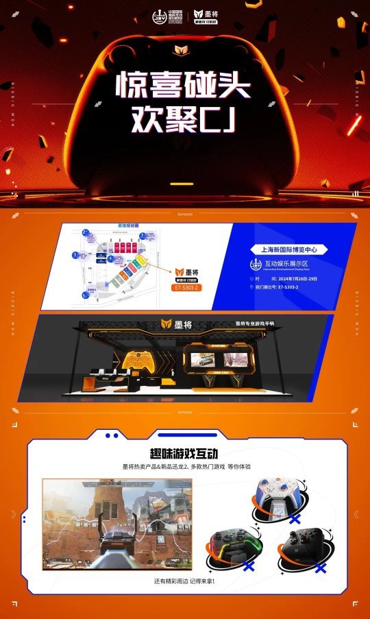 作为专业游戏设备新锐品牌“墨将(BIGBIG WON)“,本次也携带众多亮眼产品以及重磅新品,登陆ChinaJoy的E7馆S303-2展位,同时也准备了多种趣味游戏体验活动,将在现场掀起游娱热潮与玩家同乐共欢!