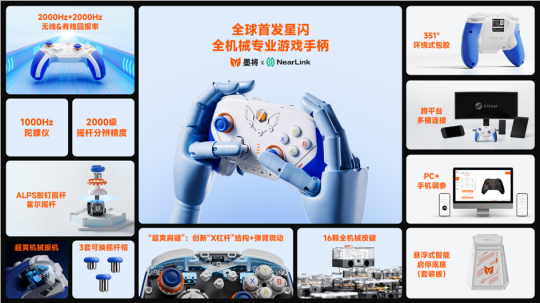 “墨将”利用星闪技术的超低延迟以及超强稳定性等优势,使得“迅龙2”摇杆在有线无线下回报率均高达2000Hz,将”竞技玩家摆脱有线束缚“这一理想变为现实。区别于其他星闪手柄,“墨将”从摇杆、体感、算法等多方面进行了升级,为”迅龙2“打造了一系列专业级功能。