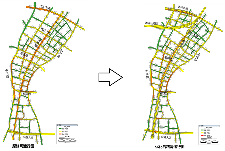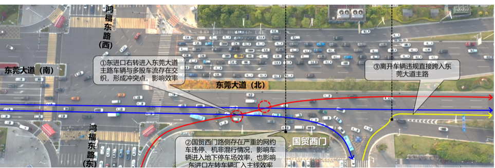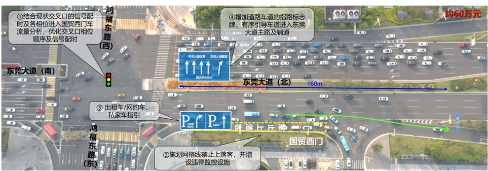 (▲治理前) 东莞大道拥堵节点治理方案(▼治理后)