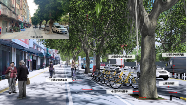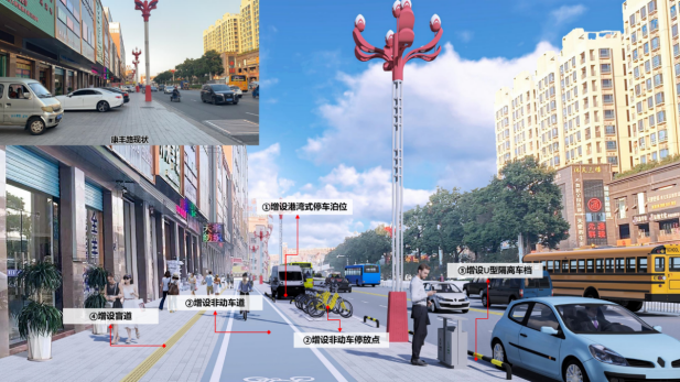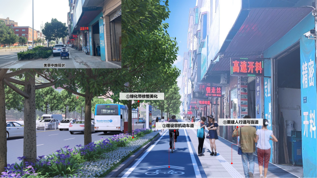 工业路作为示范街道,通过道路全要素详细设计,打造美丽桥头,提升城市品质内涵。