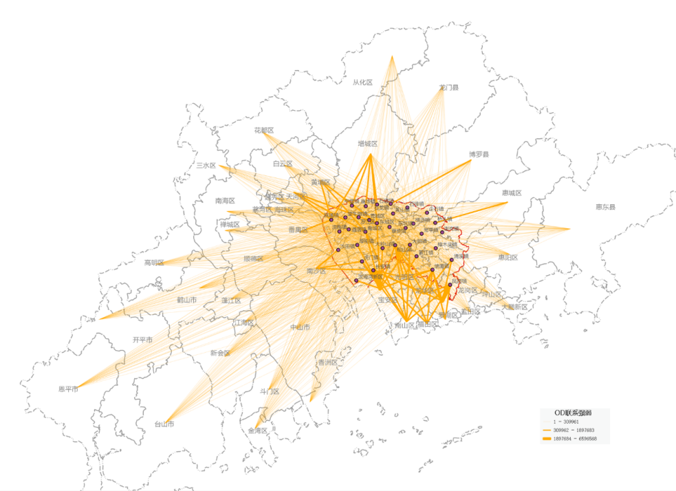 ▲东莞对外出行OD需求分布图(2022)