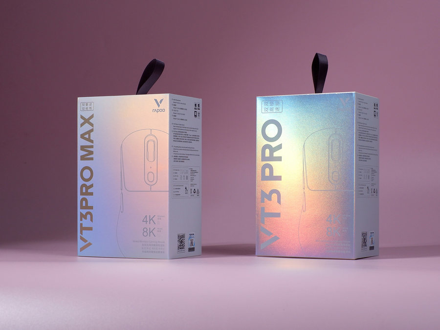 这2款VT3双高速系列无线游戏鼠标均采用了镭射样式的包装盒。