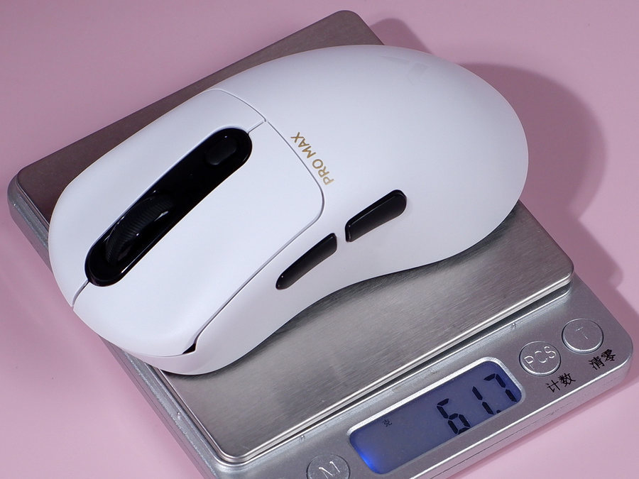 它们造型一样,鼠标尺寸一样,重量几乎相同。为了从外观方面区分它们,厂家在VT3PRO MAX外观上面标注了鼠标名称。VT3PRO虽然没有标注名称,但是“MAX”标注了,所以也好区分识别。