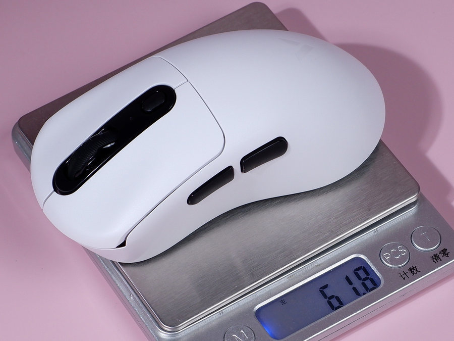拿掉无线接收器和无线接收器的仓盖。经过实测,VT3PRO MAX的鼠标本体重量约为61.7克,VT3PRO的鼠标本体重量约为61.8克。抛开误差,它们的重量几乎相同。