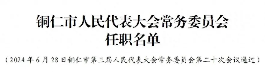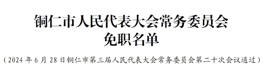 6月29日,据“贵州人大”消息,铜仁市人民代表大会常务委员会任免职名单公布。