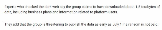 另据NHK报道,黑客勒索团伙“BlackSuit”声称对此次攻击负责,他们通过网络攻击窃取了角川约1.5TB大小的数据,包括大量“机密信息”和员工个人隐私等。该组织威胁称,需要角川提供赎金,否则将于7月1日公开这些数据。