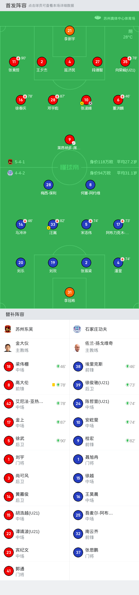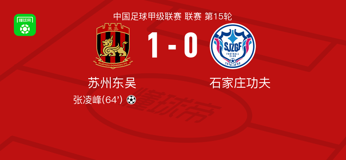 第64分钟,莱昂纳多-席尔瓦助攻张凌峰推射破门,苏州东吴1-0