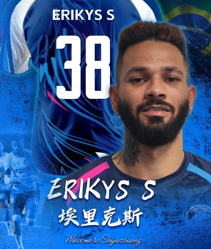 6月27日晚,石家庄功夫足球俱乐部官宣巴西前锋埃里克斯正式加盟球队。