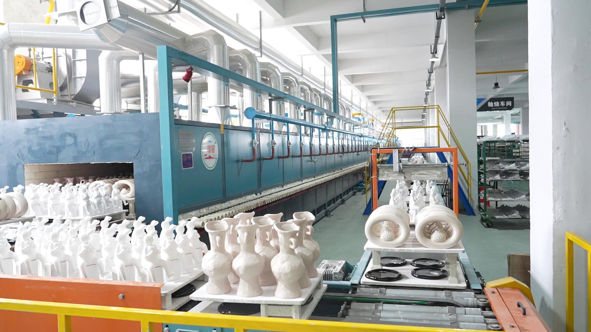 在江西驼峰陶瓷集团有限公司智能车间,全自动打浆系统、全自动机械臂利坯机、自动化隧道窑等一批智能化生产设备,使陶瓷制品生产效率显著提升,日产能达到27万件。“依托工业化的生产,能够有效提高产品标准化水平,降低成本,让更多人能够轻松入手景德镇陶瓷。”驼峰陶瓷董事长沈锋说。