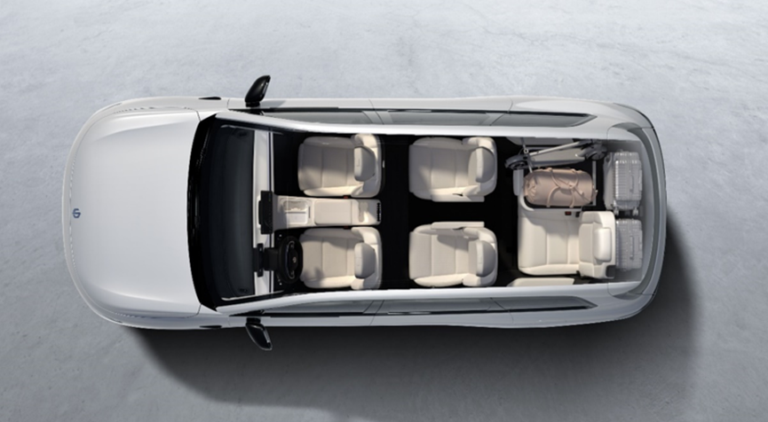 而为了满足这两个定义,C16将空间利用率做到了极致。其车身尺寸4915x1905x1770mm,轴距2825mm。车内采用2+2+2座椅布局,有效空间长度3301mm,整体空间利用率67.2%,车内容积5290L。在6座满员情况下,后备箱可以放下2个24寸行李箱;如果将后排放倒,可以将储物空间拓展至1022L。