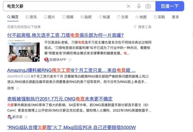 虽然“富二代”们的进入,让电竞行业得到了迅速发展,但2023年起,RNG、OMG等多个俱乐部爆出欠薪传闻。