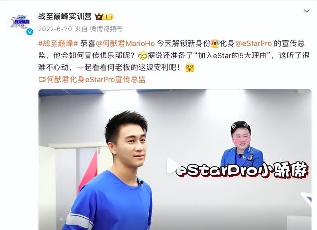 2022年,何猷君还带着eStar战队参加腾讯电竞综艺《战至巅峰》,和龚俊、杨幂、张瀚等明星艺人同台,为自己的战队扩大影响力。