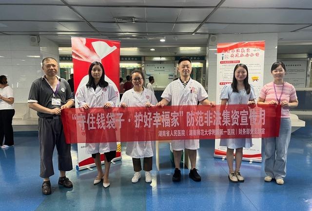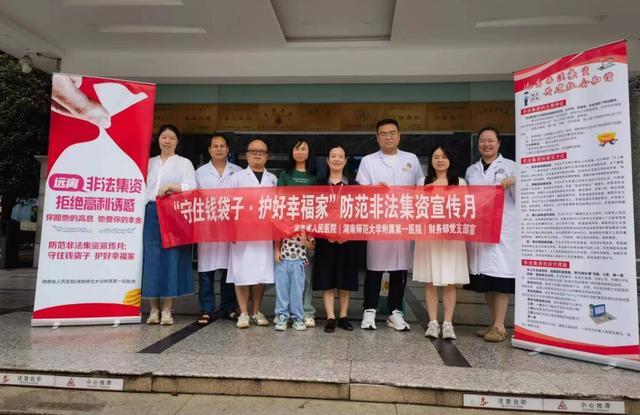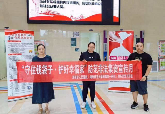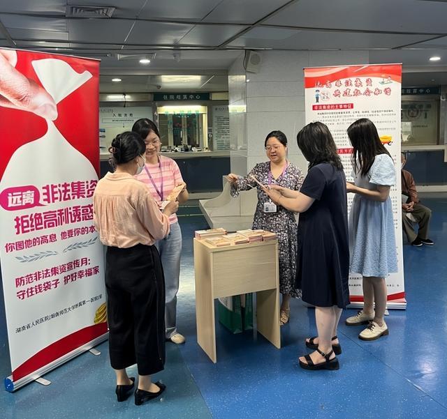 六月是全国第12届防范非法集资宣传月。为深入贯彻全国防范非法集资宣传月精神,提高公众对非法集资风险的防范意识,在6月期间,湖南省人民医院财务部积极与省打击和处置非法集资工作领导小组办公室联动,以“守住钱袋子,护好幸福家”为主题,在一院四区开展了系列防范非法集资宣传教育活动,再次掀起防范非法集资宣传高潮。