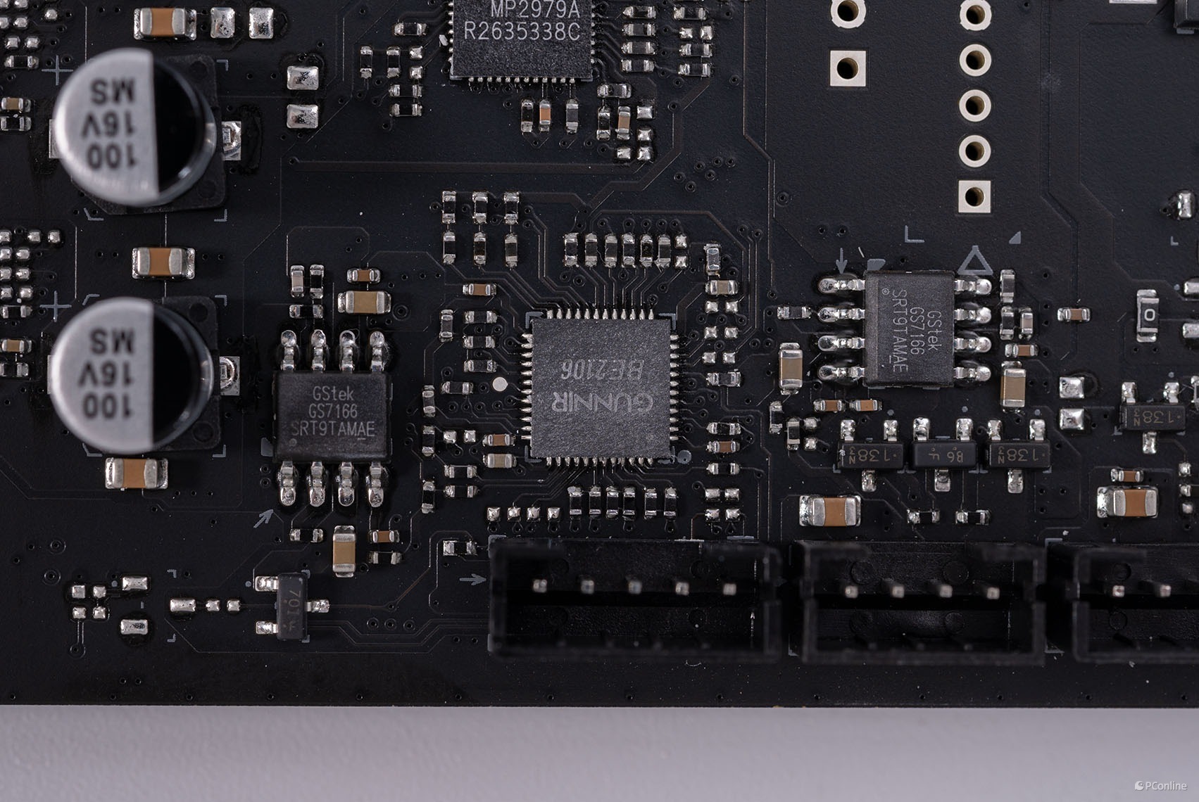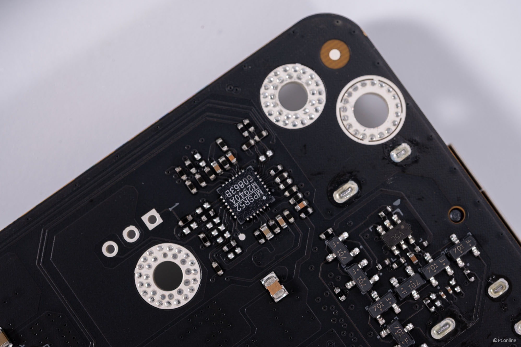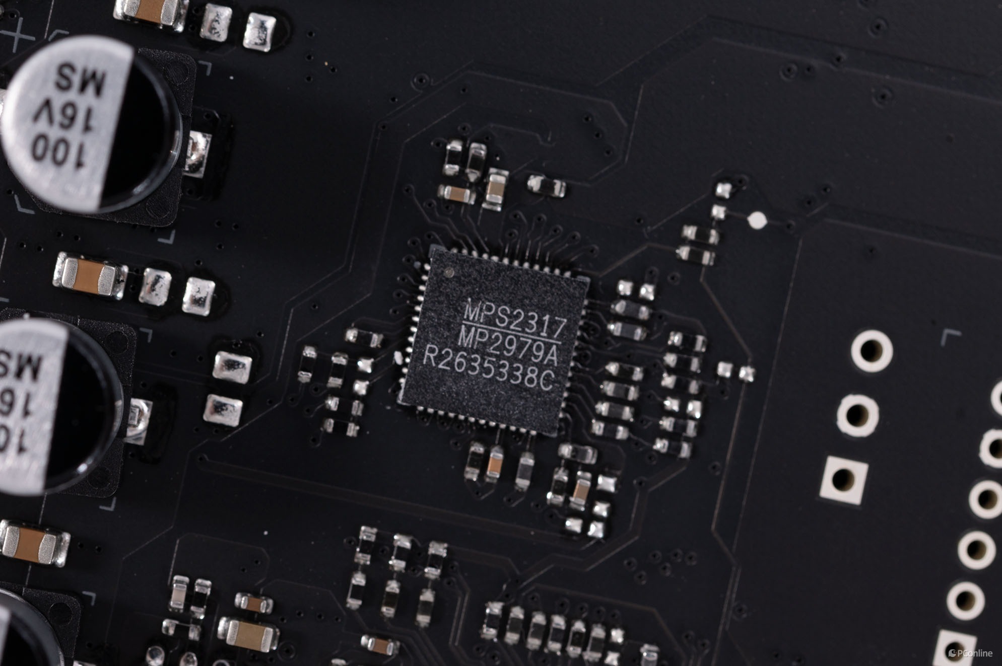 至于PWM主控,正面PCB上有一颗MPS的MP2979A,最大支持6相、三通道供电控制。