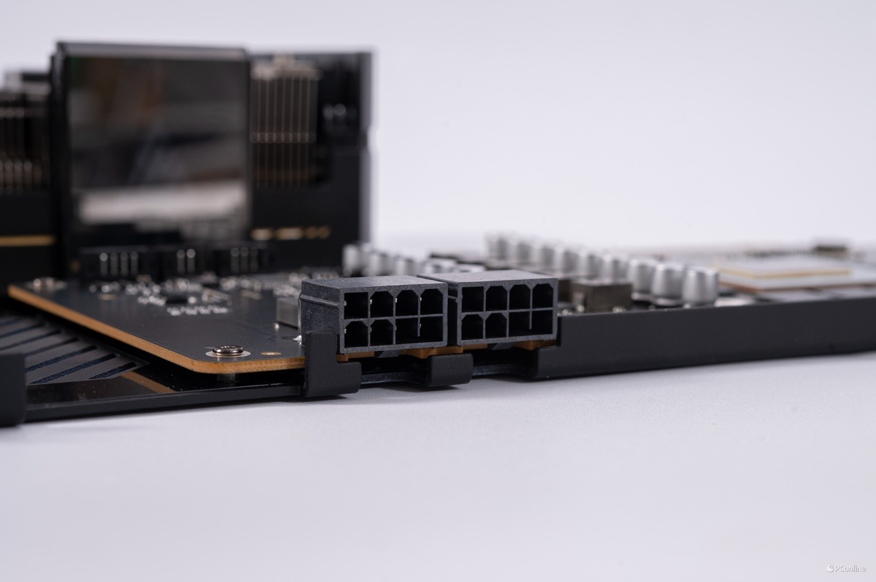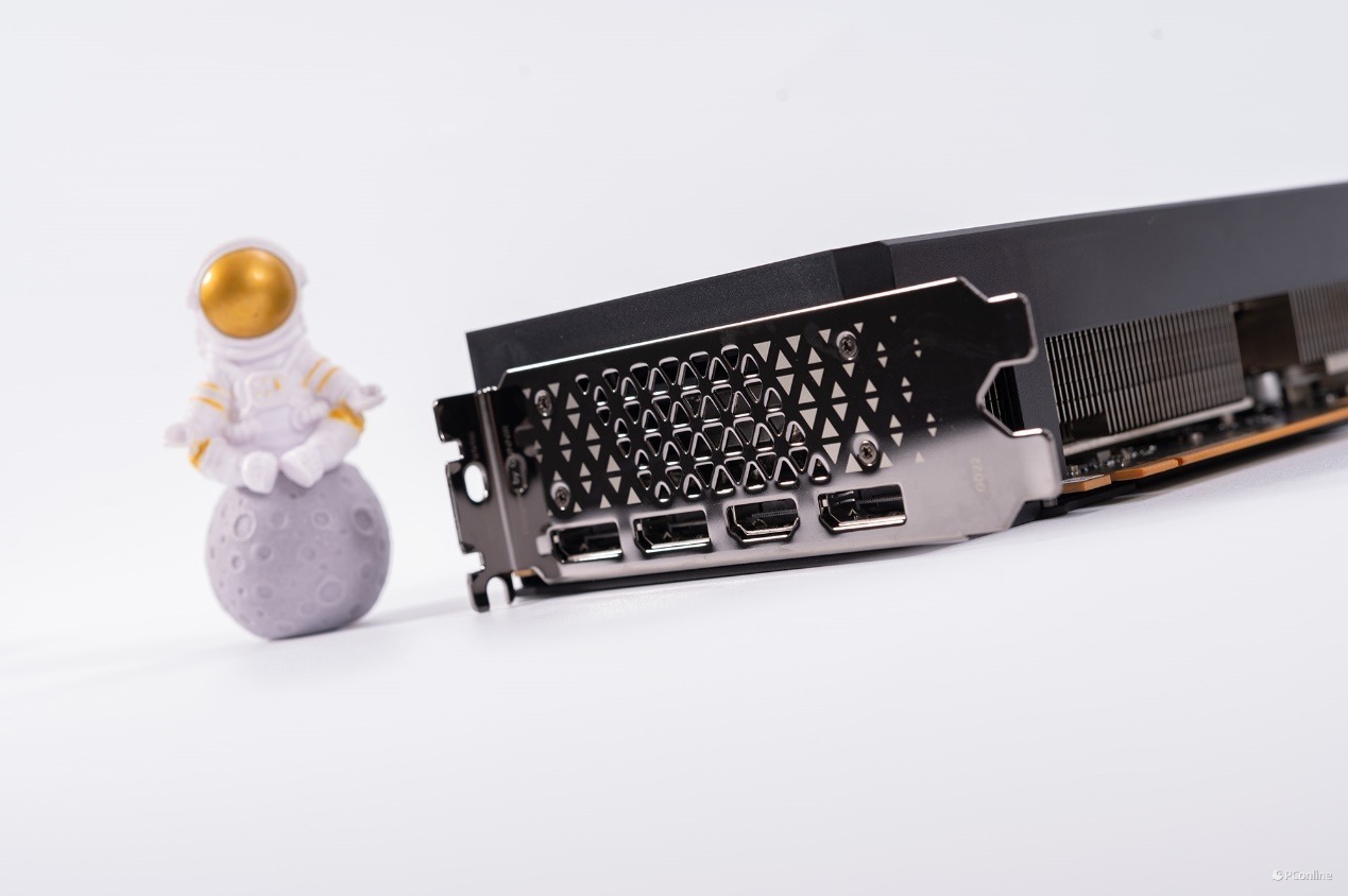 另外,从这个角度望去,显卡厚度约为2.5个PCIe槽位,相比其他显卡动辄砖头的大小,这个体积控制得刚刚好。
