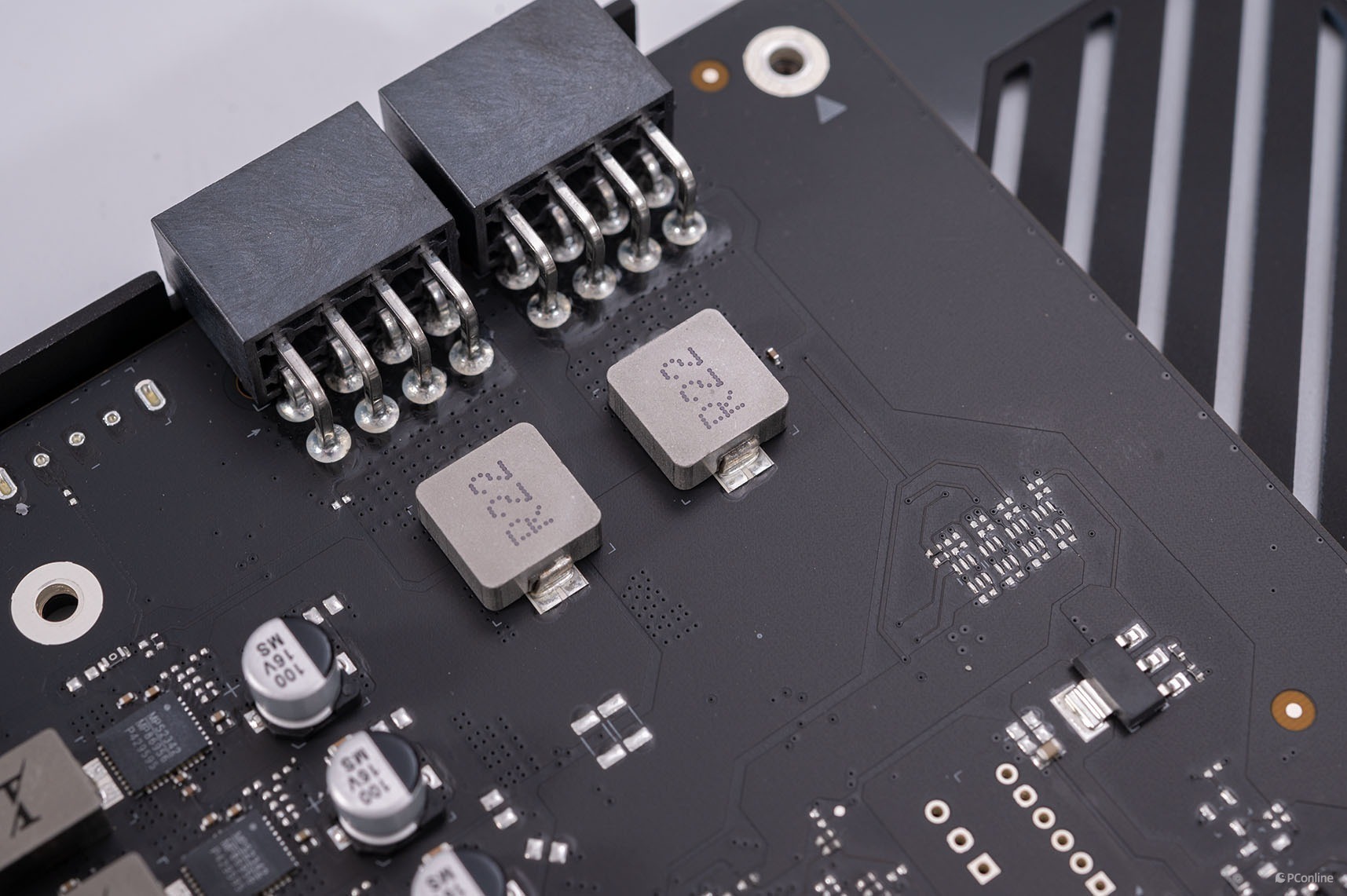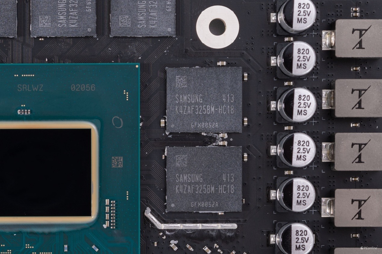 供电接口给了双8Pin,并在外接供电处设计了滤波器,确保显卡供电的稳定。