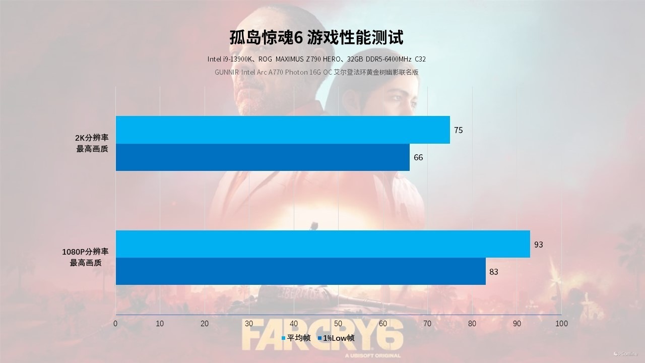 紧接着我们又测试了《孤岛惊魂6》,实际体验也不错。在最高画质下,无论是2K还是1080P都能流畅运行,并且1%Low帧都不低,都在60 FPS以上。