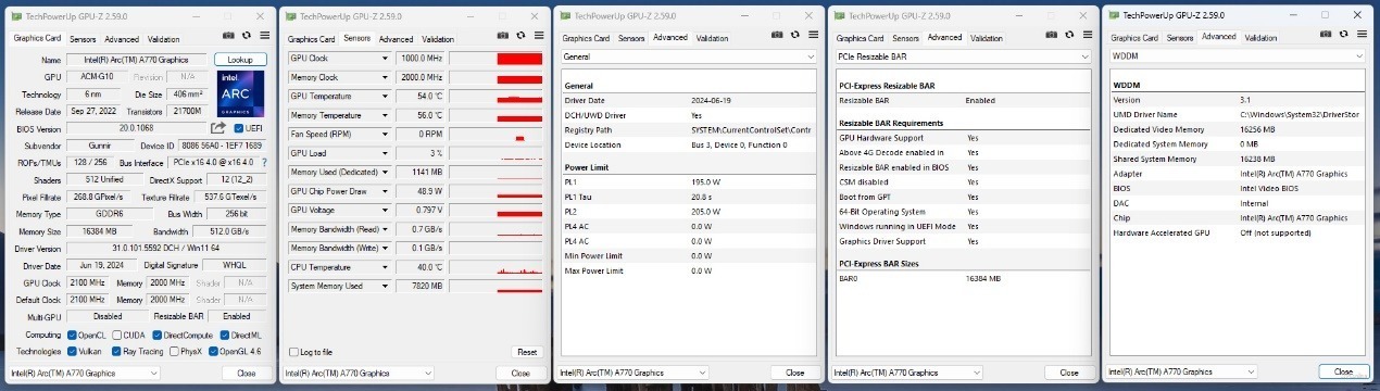 右下角则是常规的型号展示,我们拿到的是一张Intel Arc A770显卡。