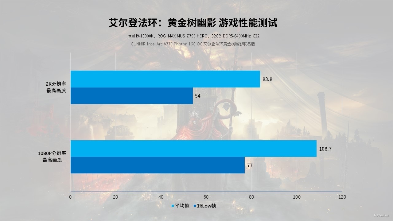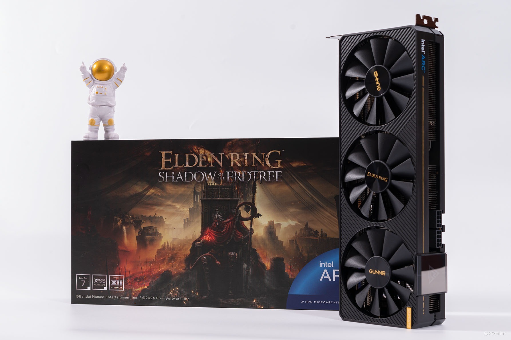 随着《黄金树幽影》的发售,蓝戟再度带来了联名款显卡,这次我们拿到的是Intel Arc A770 Photon 16G OC艾尔登法环黄金树幽影联名款显卡(下文简称“蓝戟Intel Arc A770艾尔登法环联名款”)。这次,我们重点测一下这款显卡在《艾尔登法环》中的表现。当然,常规的性能、创作等测试也少不了,看看目前Intel Arc显卡究竟有怎样的表现。