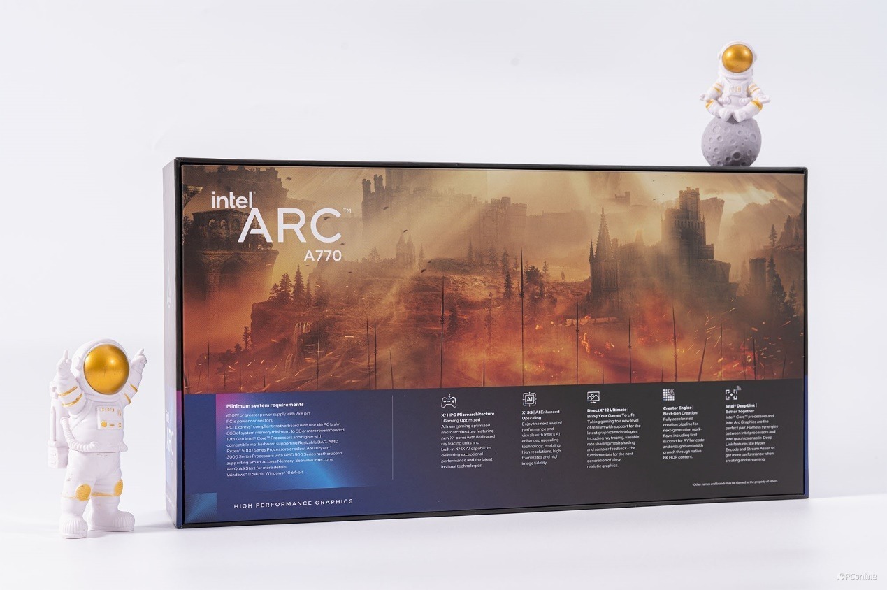 包装盒的左下角则是Intel Arc显卡相关技术展示,像XeSS超分辨率技术等。