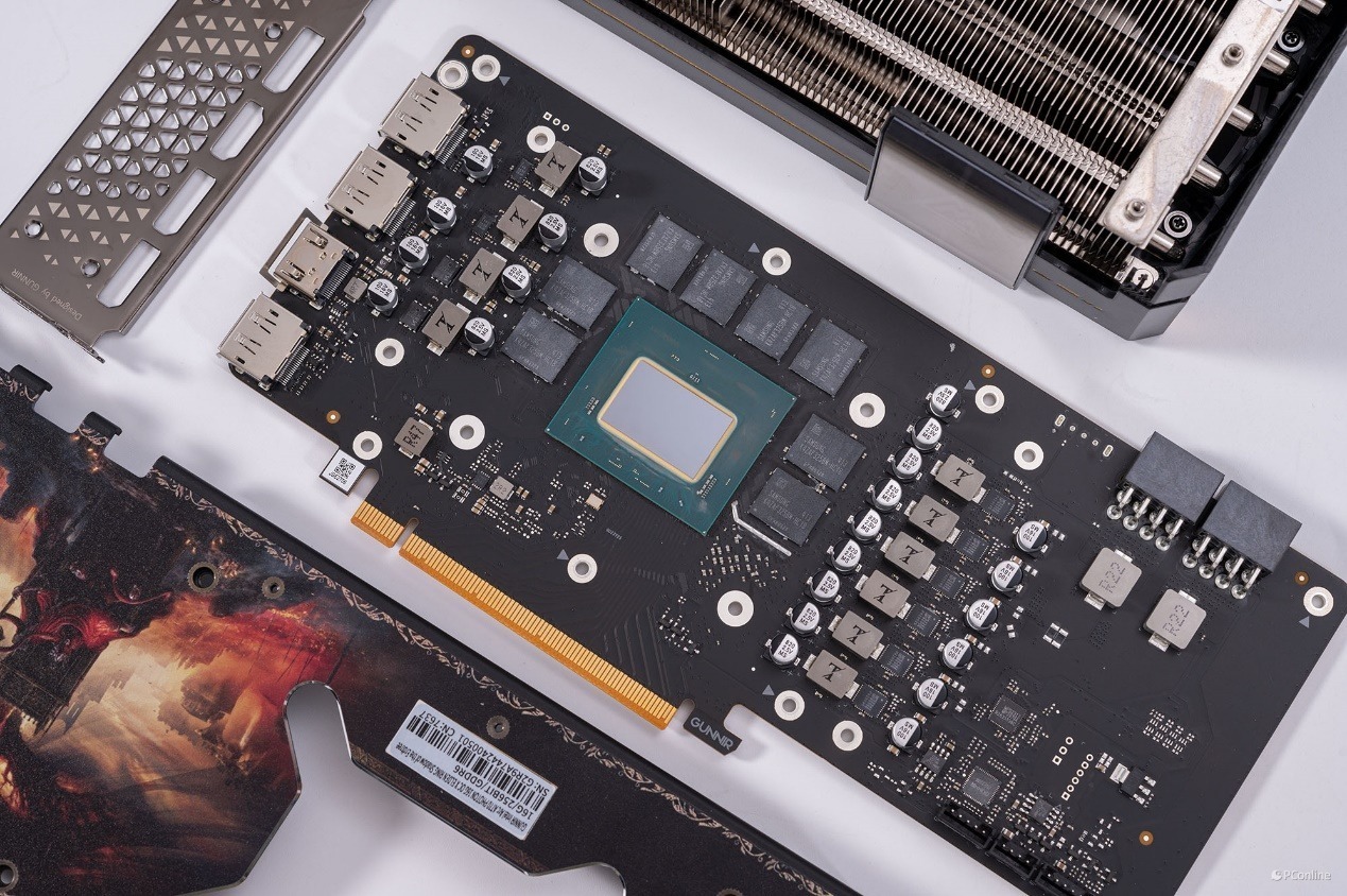 PCB正中间的芯片正是满血的ACM-G10核心,它的核心面积为 406mm²,晶体管数量达到了 217 亿。