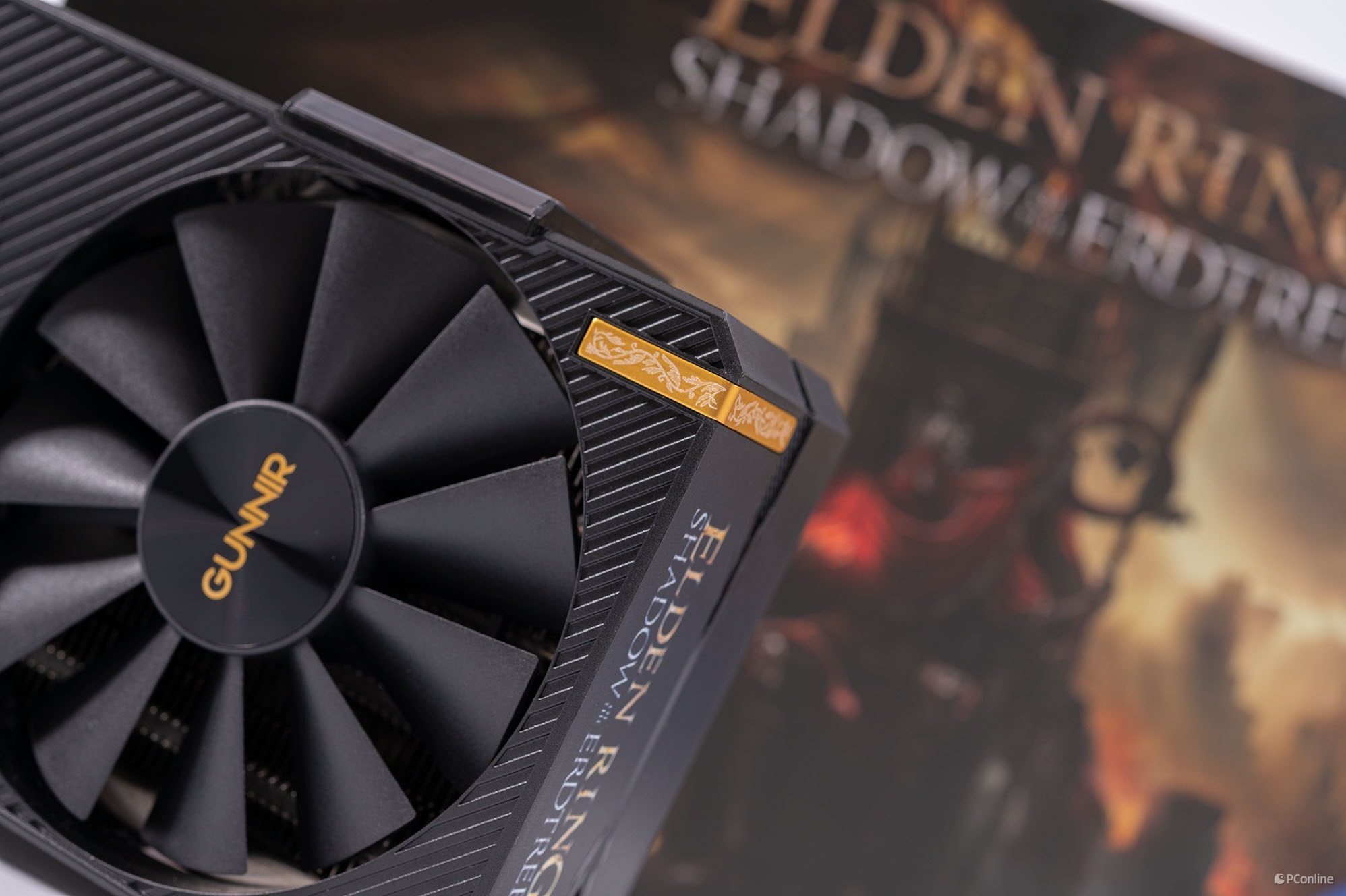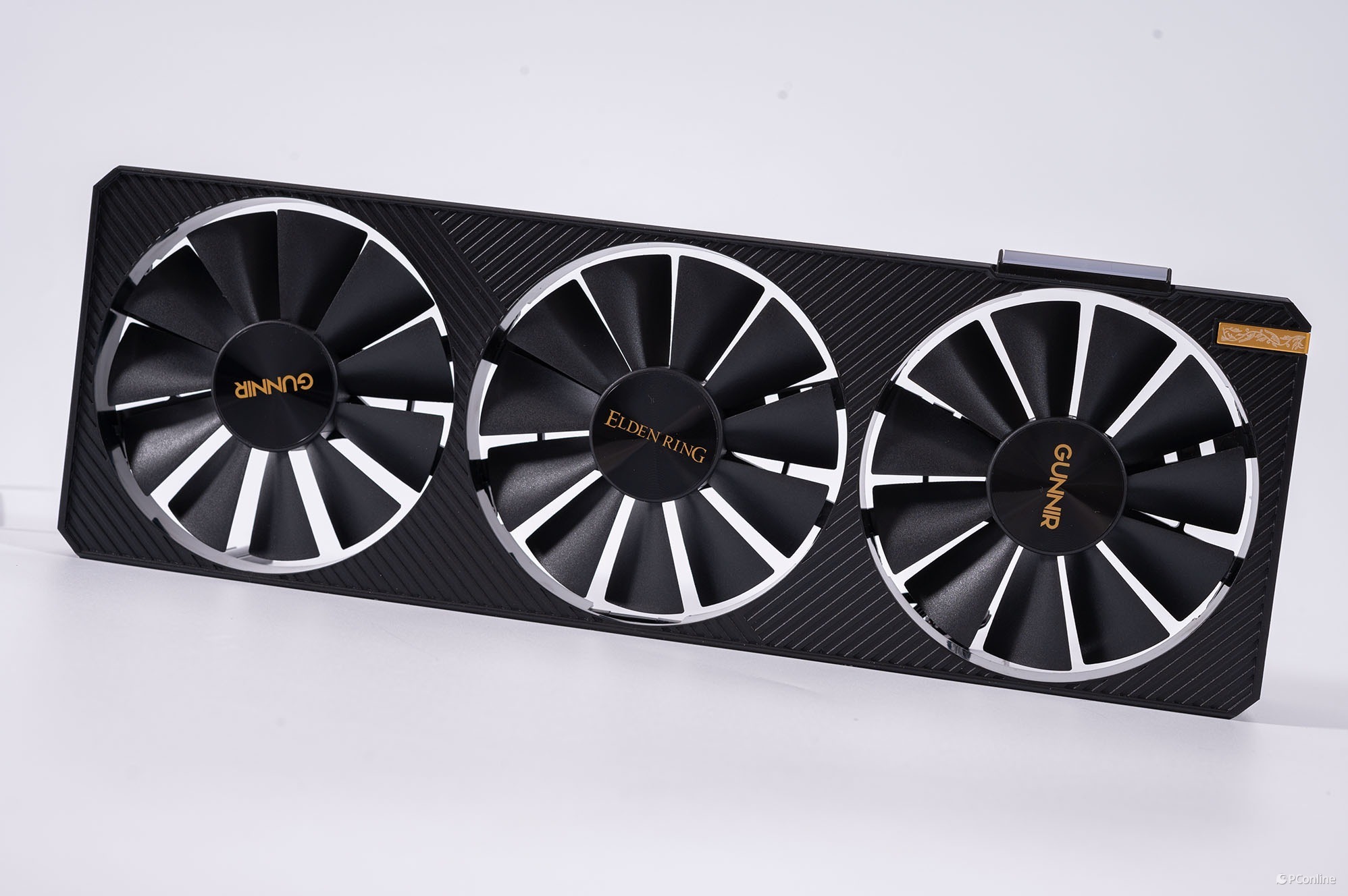 细看散热风扇,风扇中间印有“GUNNIR”与“艾尔登法环”Logo,辨识度相当高。同时,每把风扇有11片扇叶,并且内部安装了双滚珠轴承,极大程度提升了风扇耐用度。
