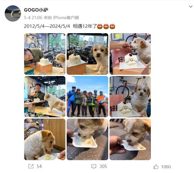 这12年来,原本是流浪狗的小萨和萨爸一直生活在武汉,它跟随萨爸在近20个城市里留下过奔跑的足迹,这段经历还被写成书。记录小萨成长的微博“GOGO小萨”也收获了19.3万的粉丝,许多网友都在上社交平台关注小萨的成长和旅行故事。