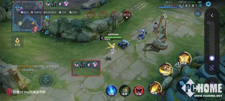 红魔9S Pro能够提供的游戏功能很多,在游戏中,左右上侧向内滑动即可呼出CUBE魔方控制界面,红魔这次提供了场景化的简介,让大家能清楚得知,这个功能是干什么用的。在这些功能中,有很多是之前迭代的功能,也有不少给人留下深刻印象的新功能。画面提取就很有想象力,可以让我们把屏幕边缘不容易注意到的区域,投射到比较醒目的区域中,比如在王者荣耀中,我们就可以把队友信息投射到中央,对于队伍信息的了解更及时,队友头像黑了就要赶快撤退了。