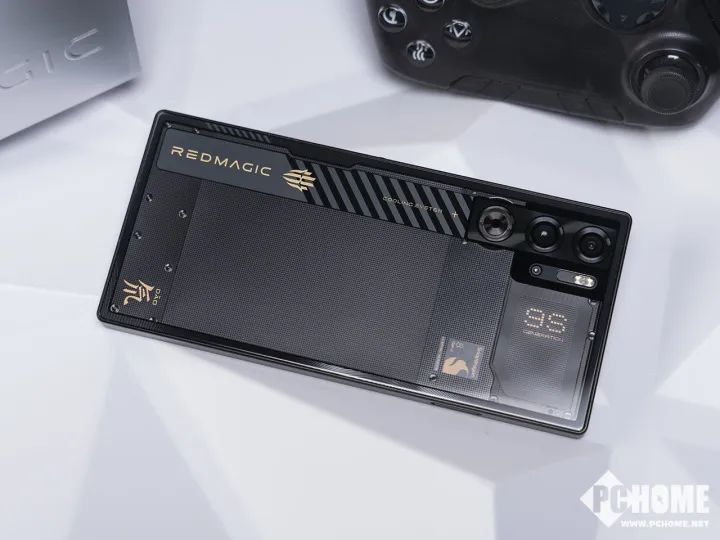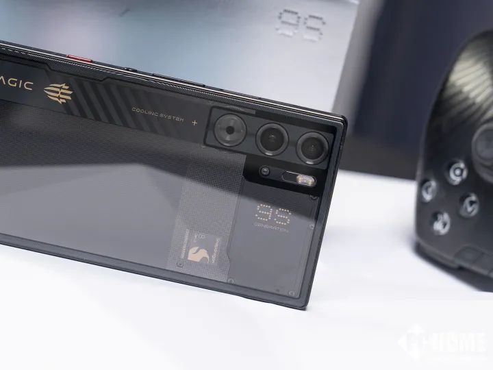红魔9S Pro沿用了此前的平整设计风格,氘锋透明版专门定制了一块玻璃,既能确保机身的高强度,也能兼顾镜头要求的通透效果。