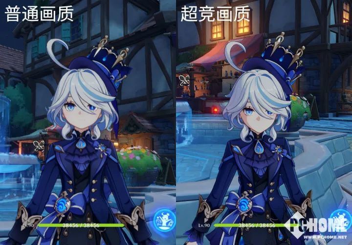 红魔9S Pro提供了超竞画质功能,基于该机强大的硬件性能和调度能力,能够突破游戏原生限制,实现分辨率的提升。在《原神》中,就能将默认的837P分辨率,提升到1674P的2K级别画质。通过两种模式的对比效果来看,开启超竞画质后的画面提升显著,画面一下就变得精细了,看上去就是糊与精致两种效果。