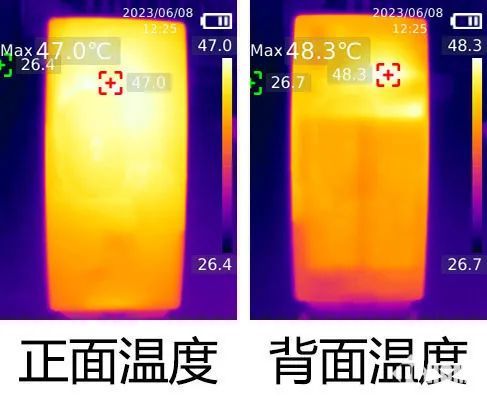 游戏平均功耗7W,在如此优秀的性能表现下,能够让人忽略掉较高的功耗。正面最高温47.0度,背面最高温48.3度。我们认为,在这种需要高性能支持的游戏中,游戏手机要解决的问题就是确保流畅性,发热问题是可以通过其它手段解决的,性能则不能。简单来说,手机发热高可以用风冷或散热背夹搞定,但性能不够就是会卡。