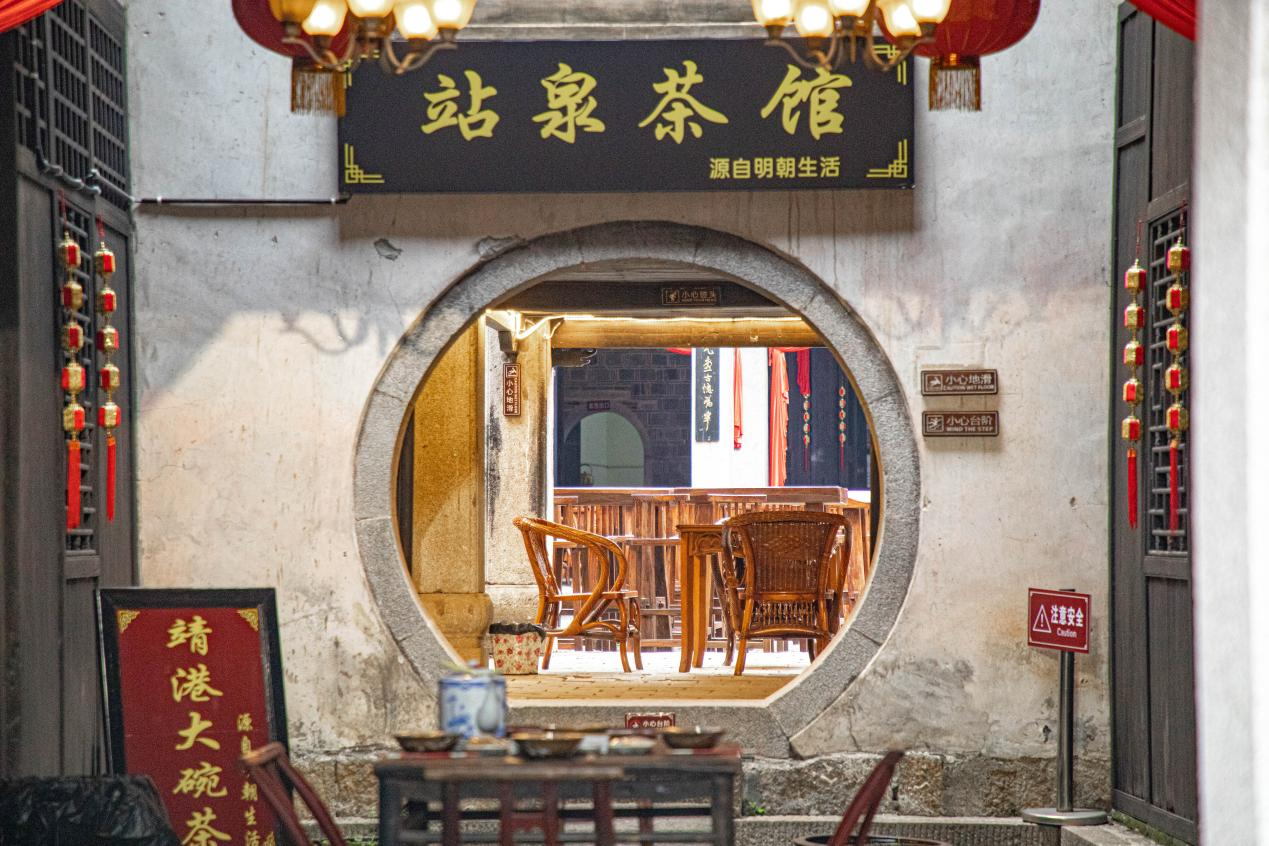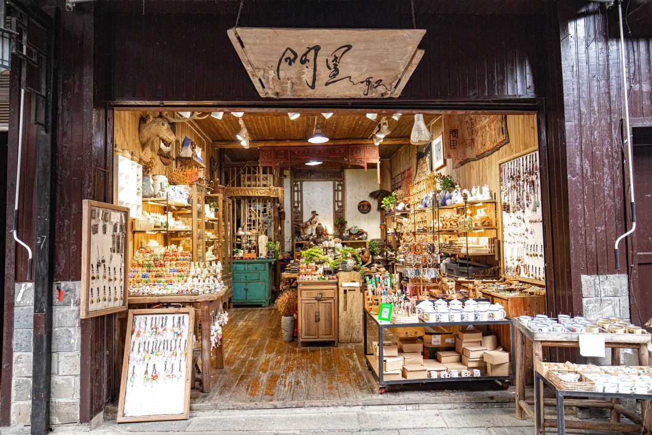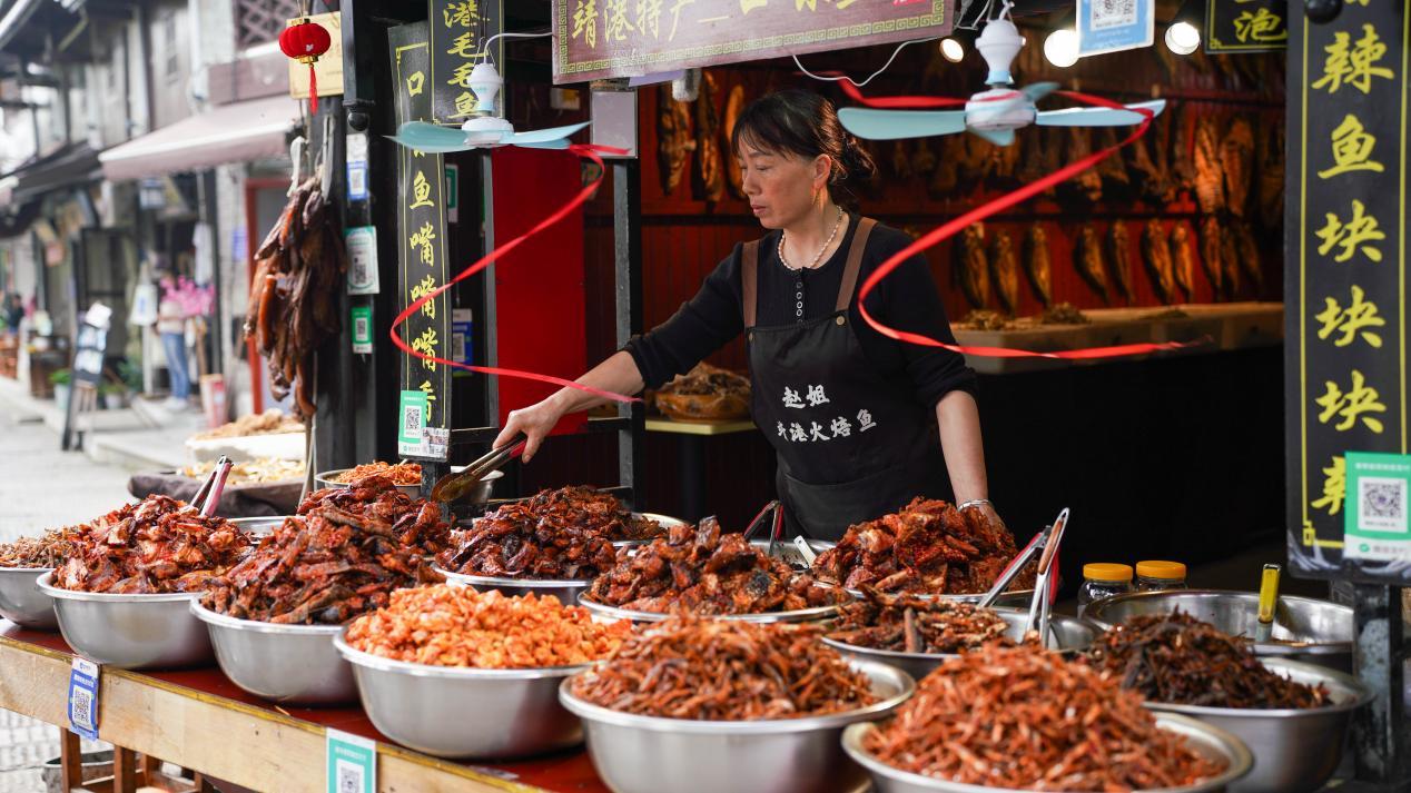 古镇的街道两旁店铺林立,菜馆、杂货铺、饰品店……买卖吆喝中,人来人往间,生活的滋味愈发浓郁。出售古旧书和文房四宝的店铺,使人恍若步入书香四溢的世界;贩卖当地特色农产品的铺子,则让人感受到大自然的馈赠;还有不少充满创意的文艺小店,用独特的设计吸引着年轻人的目光。各具特色的商店共同构成了靖港的商业风景线。