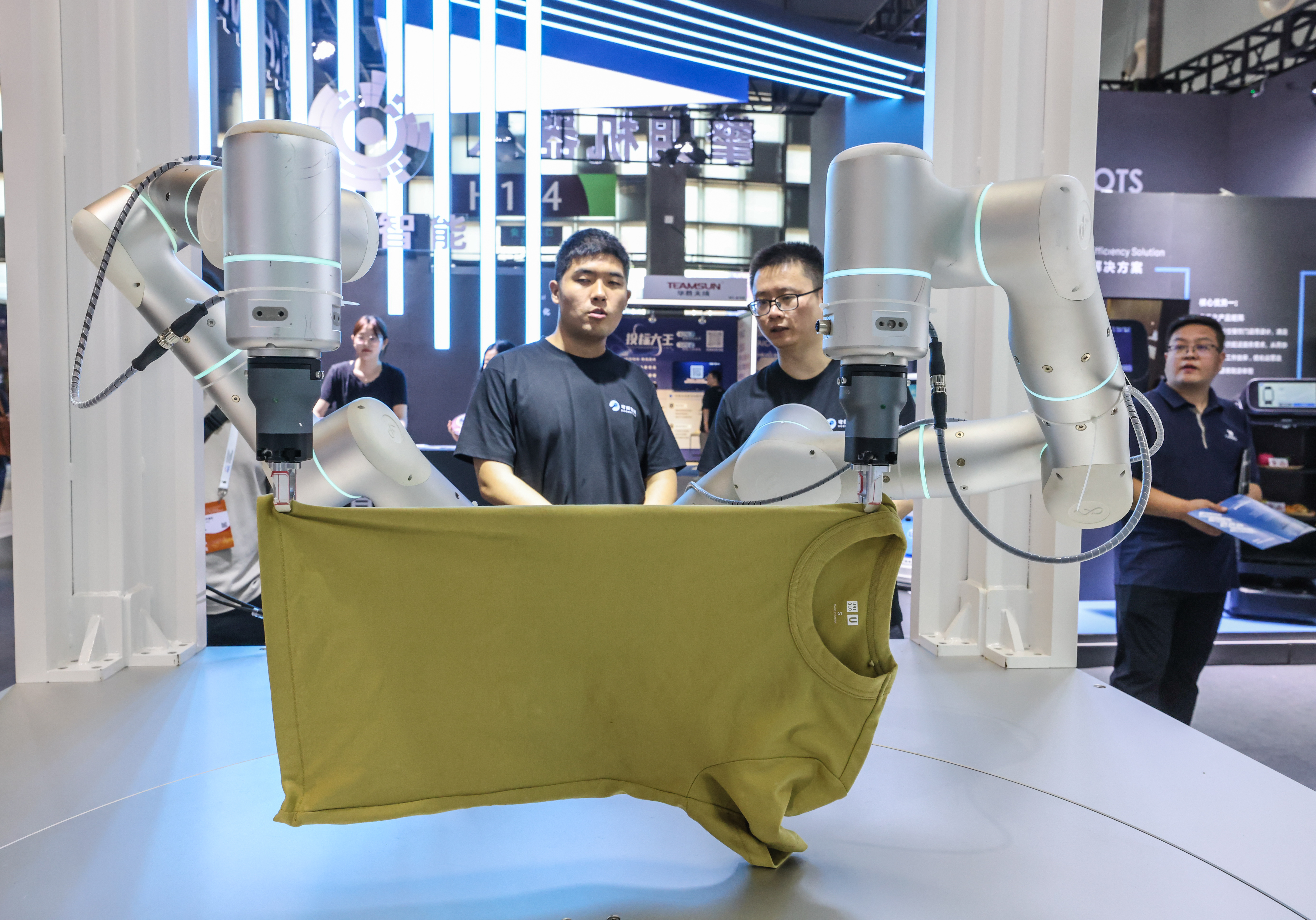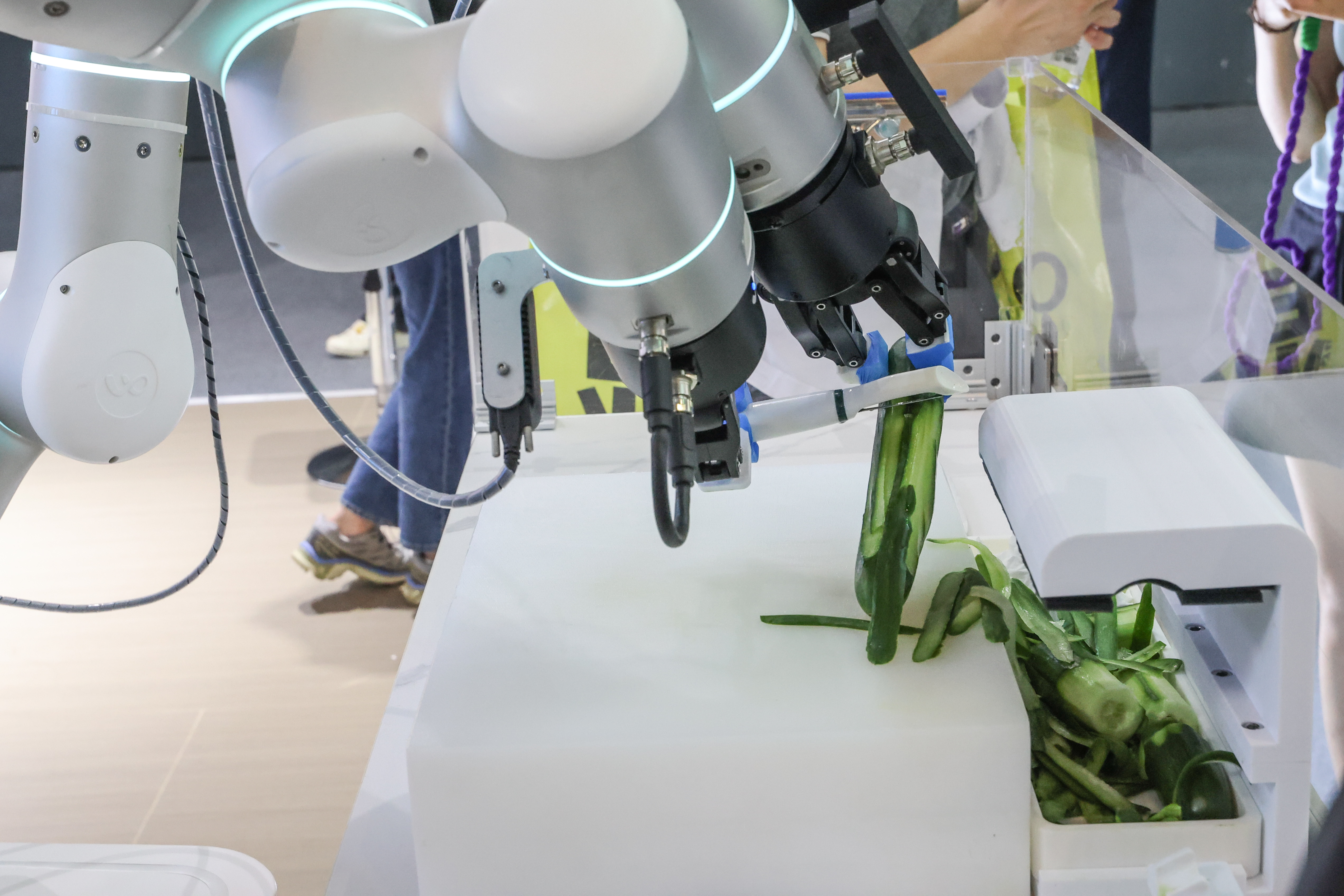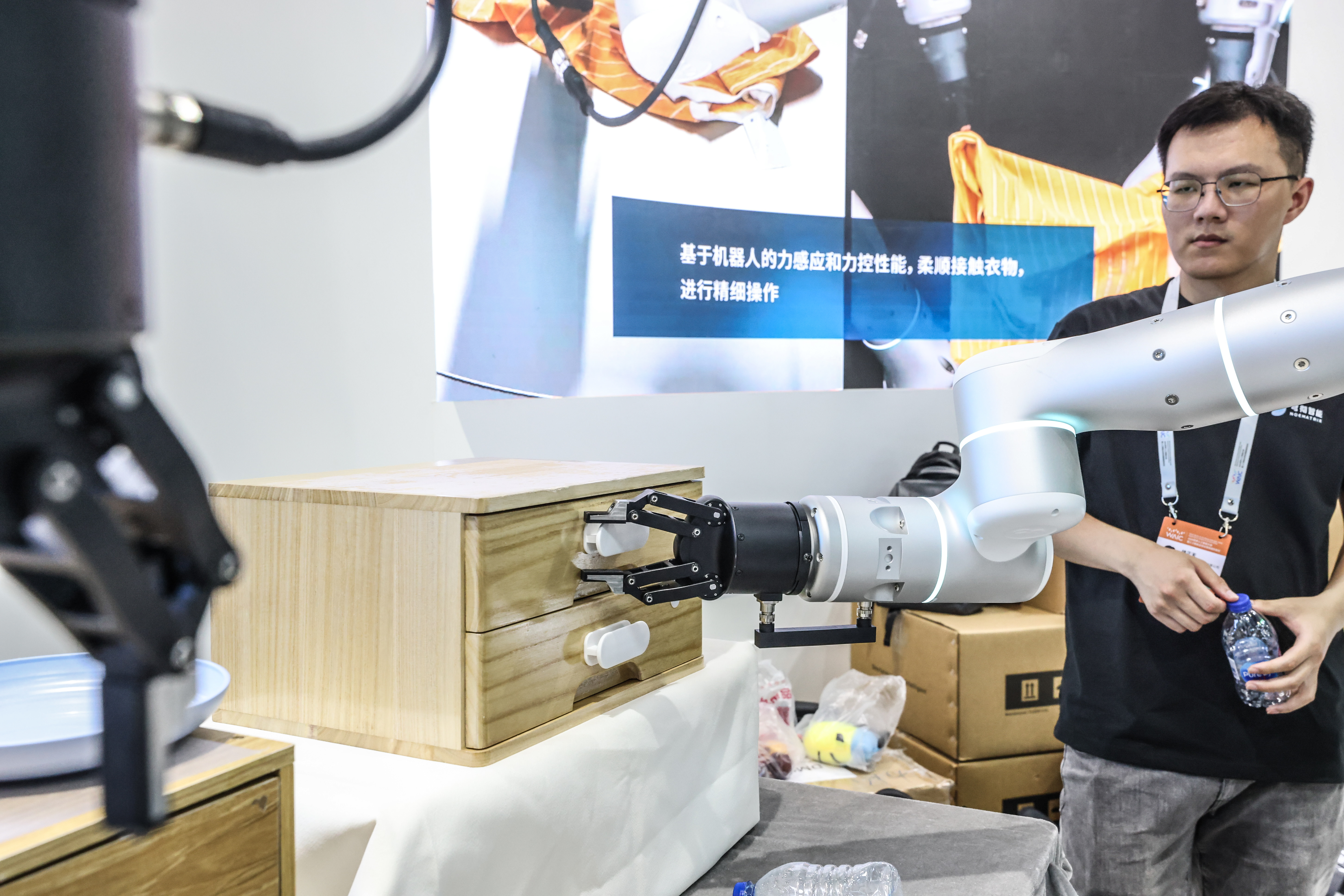 叠衣服、削黄瓜、开抽屉、局部清理……这些日常生活中手脑协同的工作在本次大会的穹彻智能展位上由机械手臂就能轻松完成。据了解,以实现通用性和智能性为核心目标,穹彻具身大脑提供“以力为中心”的具身智能大模型、原子技能库AnySkill、基础软件框架及相关开发者工具链,助力机器人轻松掌握更多技能、完成更多应用,充分发挥具身智能的价值。