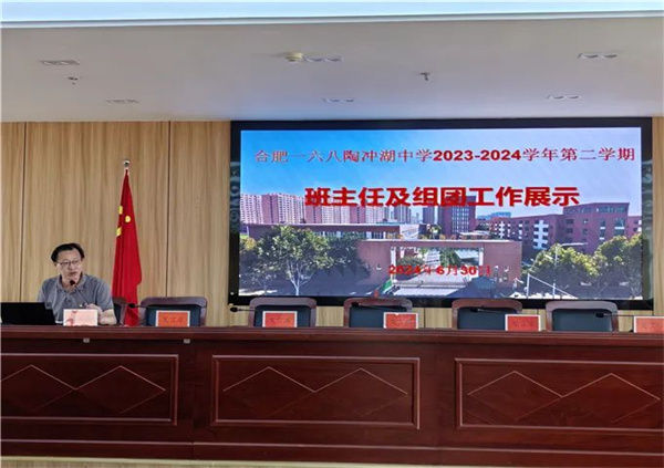 班主任是学校德育工作的执行者,是班级管理工作的核心力量,为提升班主任的管理水平,优化班级管理方法,2024年6月30日,合肥一六八陶冲湖中学召开2023-2024学年第二学期班主任及组团工作展示,本次会议由七年级副主任赵生主持,校长陆勇出席会议,七年级全体教师参加会议。