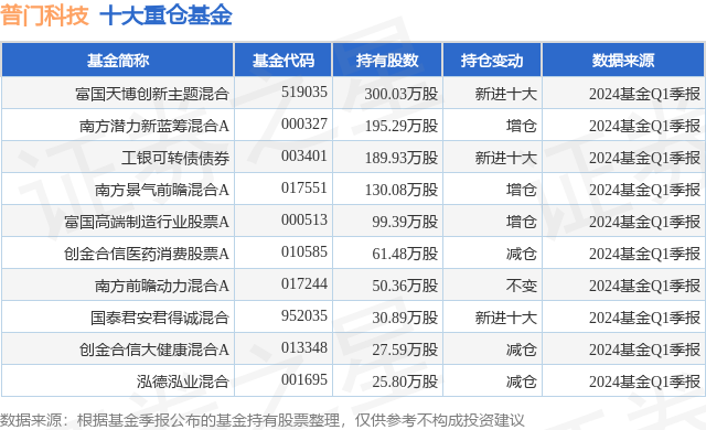 重仓普门科技的前十大公募基金请见下表: