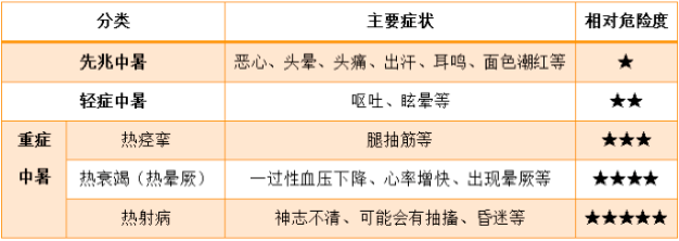 王志华主任介绍,中暑是有先兆的,若在高温环境下出现出汗、口渴、头晕、眼花、耳鸣、四肢无力、胸闷、心悸、恶心、注意力不集中、体温正常或略升高(<38℃),就要小心,可能要(或已经有点)中暑了。