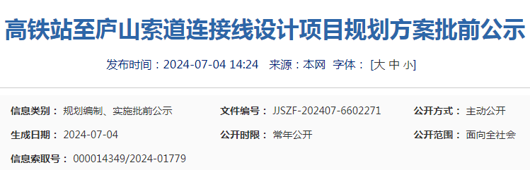 公示内容:本次公示项目为高铁站至庐山索道连接线设计项目。
