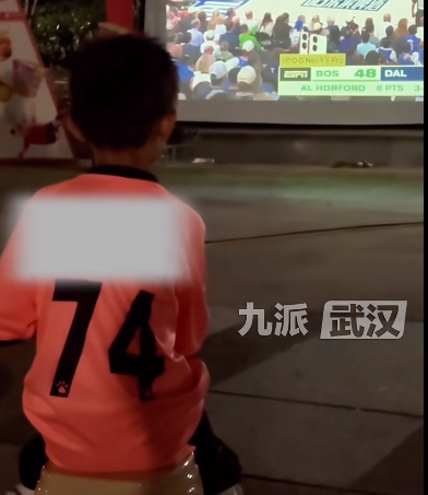 现场,一位穿着球衣来看球赛的小男孩引起了记者的注意,他坐在第一排,盯着银幕看得目不转睛。小男孩的父亲刘先生告诉记者,孩子今年上小学,从幼儿园就开始打球,也喜欢看球赛,今天有这个活动就带着他一起来了。