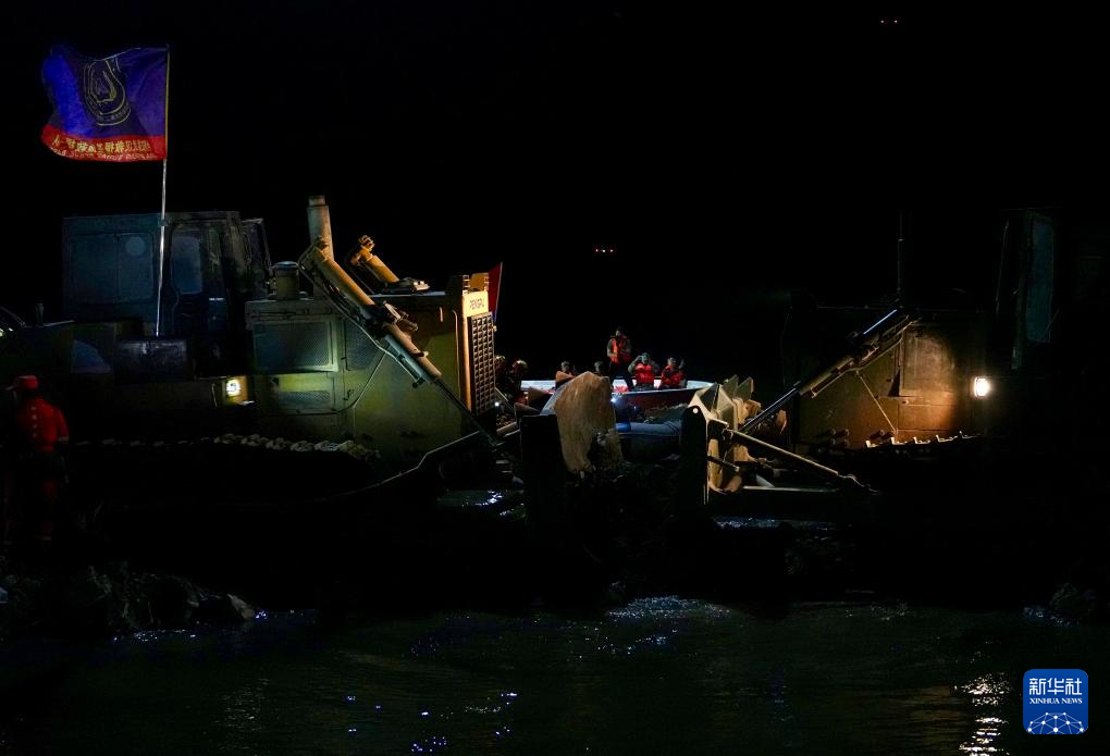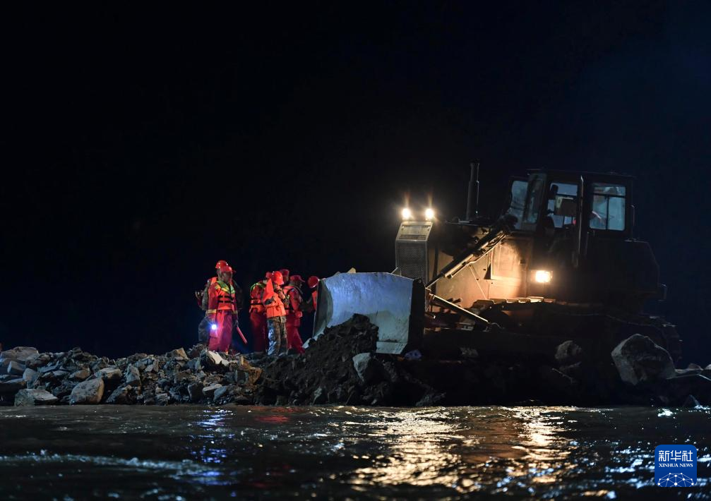 这是7月8日晚拍摄的团洲垸洞庭湖大堤决口封堵现场。
