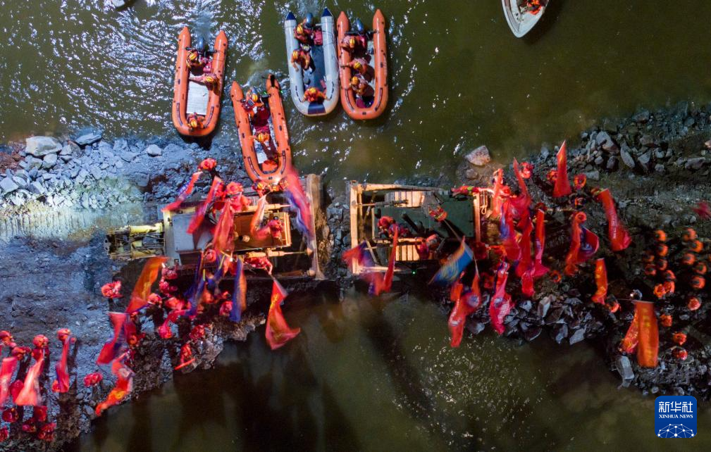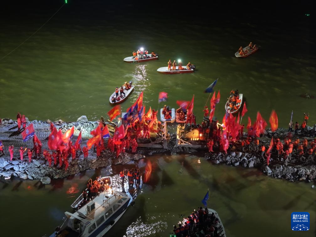 7月8日22时31分,记者在湖南华容县团洲垸洞庭湖大堤决口封堵现场看到,团洲垸洞庭湖大堤决口完成封堵。