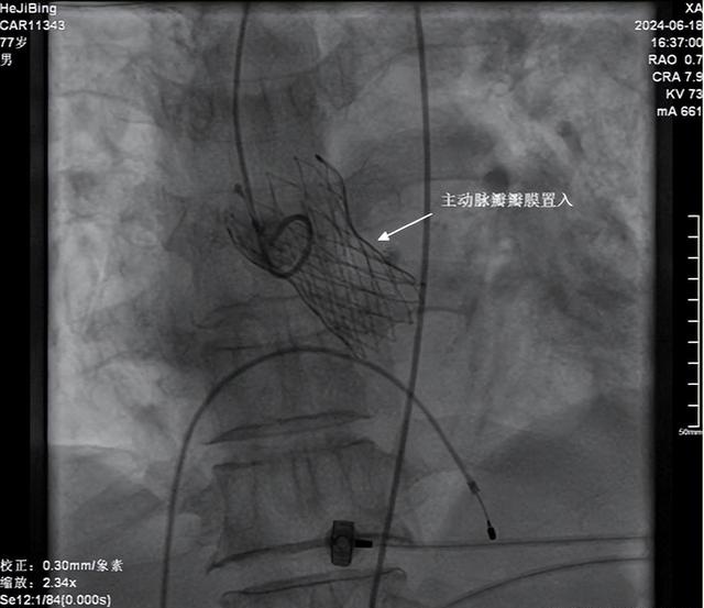 该手术经股动脉穿刺,球囊扩张狭窄的主动脉瓣后,经导管植入主动脉瓣膜支架,相比外科开胸手术,创伤小,感染风险小,恢复快,特别适合高龄、有基础疾病患者,且疗效确切。