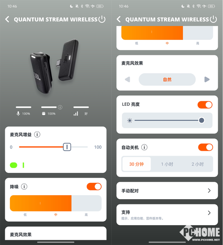 JBL风语者 无线麦克风可以通过JBL HEADPHONES APP 来设定录制的声音电平,也可以设置合理的录音降噪功能,能实现有三种降噪等级。同时能录制的声音曲线风格,包含自然,低频增强和高频增强三种可选,带来定制化录制体验。
