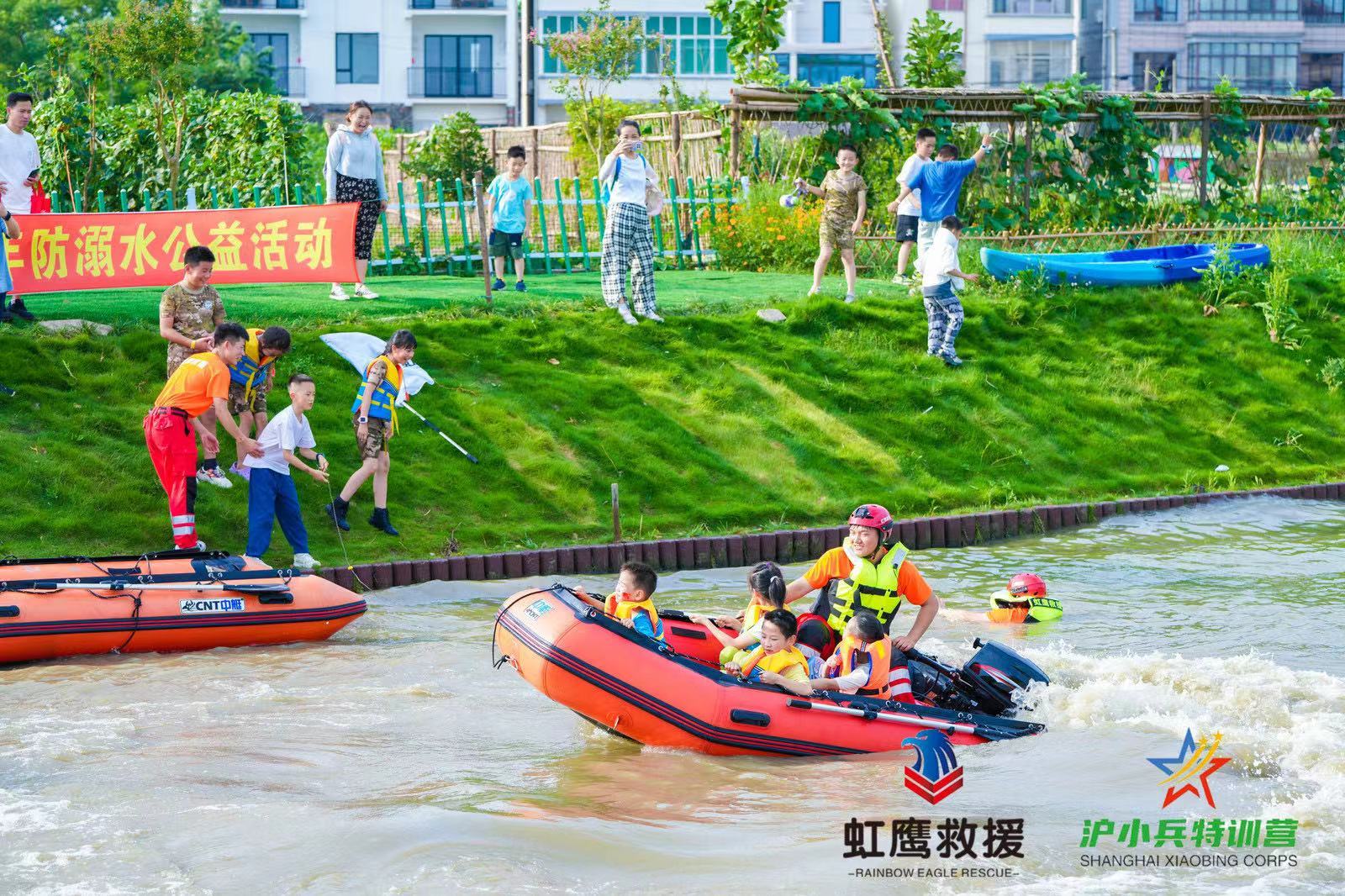 6日,上海虹鹰救援队开放日暨暑期青少年防溺水公益培训举行。