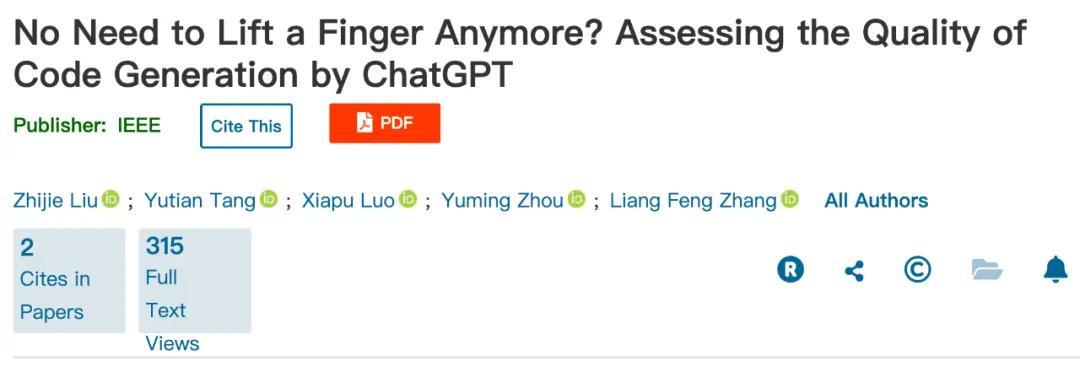 上个月,一项发表在 IEEE TSE 期刊上的研究评估了 ChatGPT 所生成的代码在功能性、复杂性和安全性方面的表现。结果显示,ChatGPT 生成可用代码的能力差异很大。